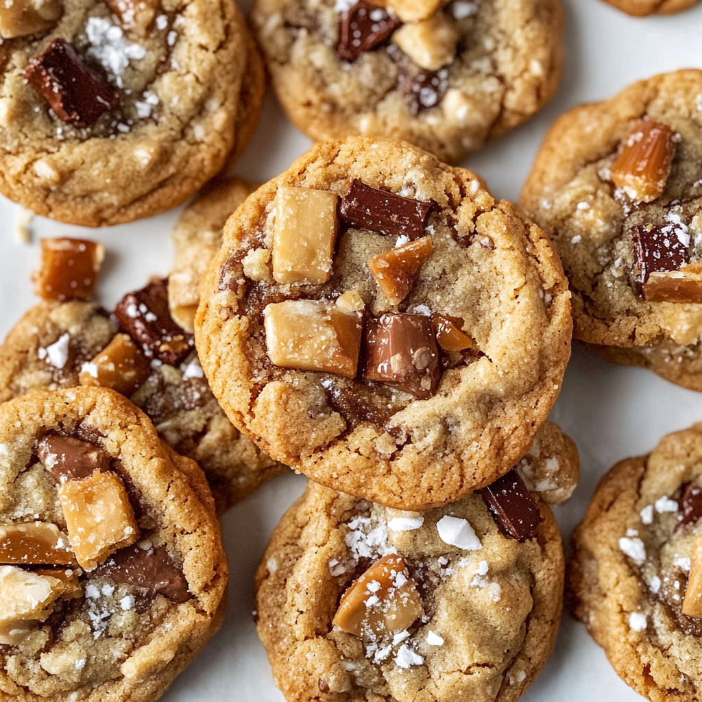 These cookies balance sweet chocolate, buttery toffee, and salty crackers. The mix of textures makes every bite satisfying.