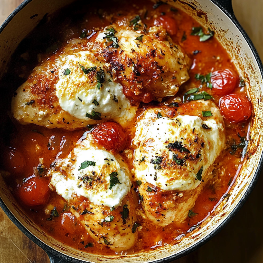 I first made this recipe when I wanted a quick weeknight dinner that felt special without being complicated. Juicy chicken is baked to perfection, topped with a vibrant mix of tomatoes and garlic, then finished with a layer of melted mozzarella that adds richness and comfort. The aroma fills the kitchen and is sure to make everyone eager for dinner.