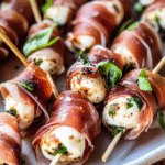 I make these often when I need something quick for guests or when I want a fun snack for movie night. They remind me of something you would find on a charcuterie board but in bite-size form. The warm mozzarella becomes soft and stretchy, while the prosciutto gets slightly crispy on the edges. Each bite has enough flavor to make you feel like you put in a lot of effort, even though the entire recipe takes less than 20 minutes.