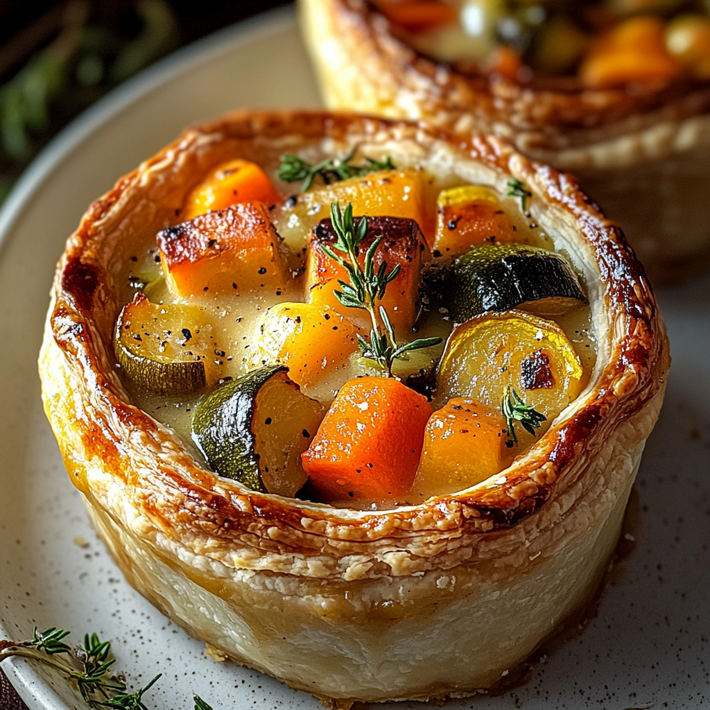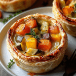 These Roasted Autumn Vegetable Pot Pies blend caramelized vegetables with a creamy herb sauce under a flaky pastry crust. They are cozy, flavorful, and perfect for fall dinners.