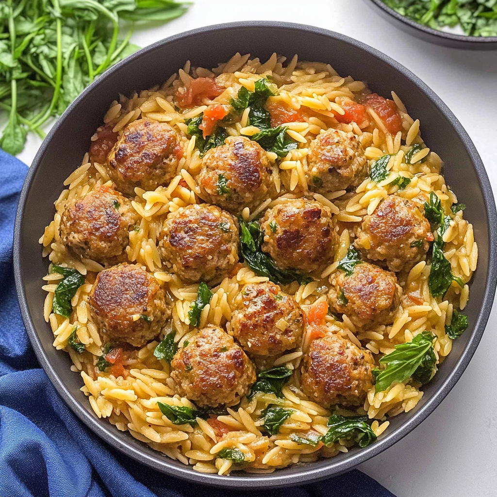 Tuscan Chicken Meatballs and Orzo: A Comforting Italian-Inspired Dinner